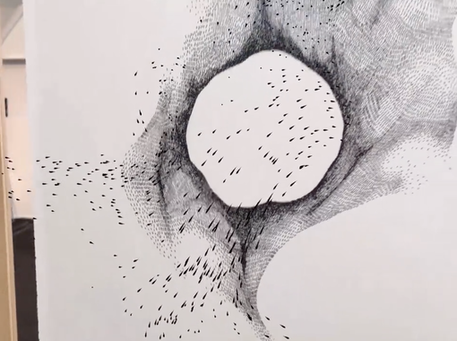 黒い点のような無機的な物質が、絵の中から湧き出るようなイメージ