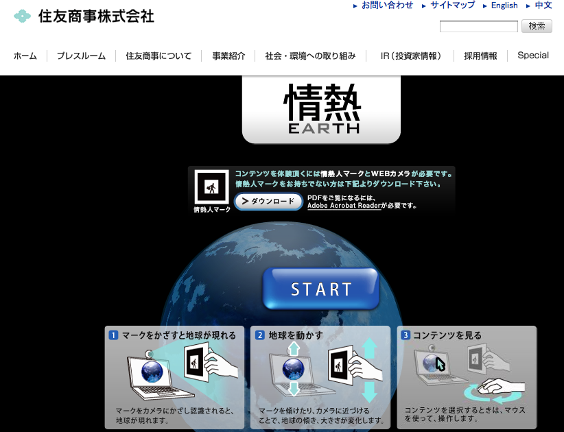 1.パソコンで住友商事のスペシャルサイト「情熱EARTH」のURLにアクセス
