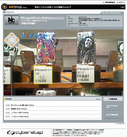 「サイバーステップ AR Shop」とは、ARを活用し店舗内に設置されたロボットを操作することで、Web上で商品を手に取るような感覚で買い物ができるEコマース。導入第一号として、原宿のラインストーンを用いたカスタマイズ専門店「NIAC(ニアック)」のiPhone用携帯電話カバーを販売する。