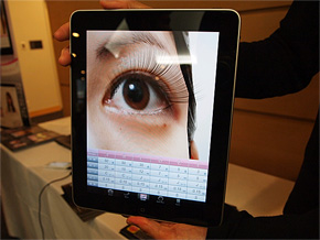 モーションポートレートが、顔写真を3Dアニメ化し、さまざまなデザインのまつ毛を合成するiPadアプリ「iLash」を開発している。まつ毛エクステンションを施術するエステサロンや美容室での使用を想定した「プロ向けのカウンセリングツール」という。