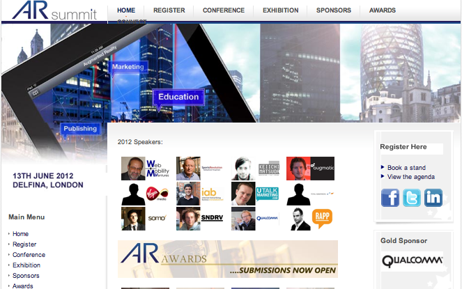 Now in its 2nd Year, the AR Summit, a one day conference & expo is set to return in 2012 providing a unique insight into the developments, opportunities and benefits AR brings. This platform is designed to bring together the industry advocates, leading technology providers and companies/brands looking to discover, explore, share and debate the future of AR.