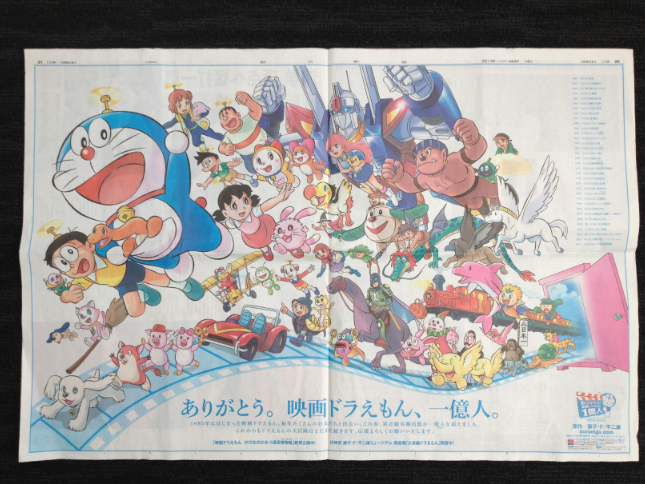「ありがとう!映画ドラえもん、1億人」のAR広告 4月4日 朝日新聞朝刊で! "Doraemon! Thank you, 100 million people" is carried out in the morning newspaper Asahi Shimbun advertising AR (April 4)