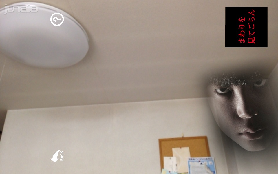 また、団地という日常に潜む、閉鎖された空間の恐怖を描いた本作ならでは。同アプリを使用してぐるりとあたりを見回すと、浮遊するミノルを見つけだす事ができる。