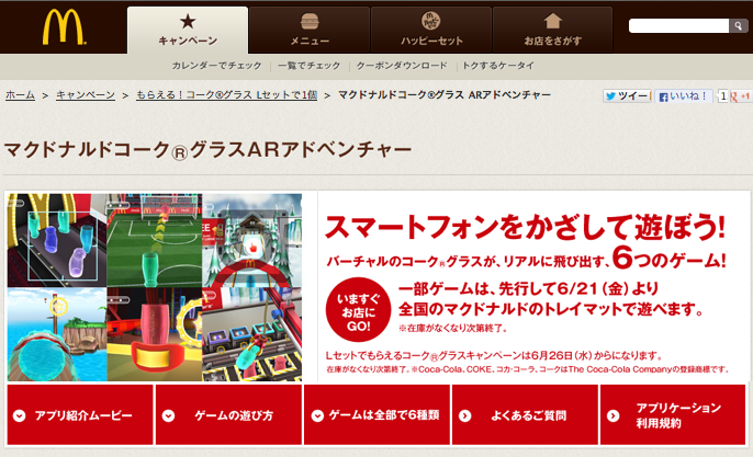 日本全国のマクドナルドで、スマートフォンに専用のARアプリをインストールし、トレイマットにカメラかざして6つのゲームが楽しめるARアドベンチャーが開催されている。
