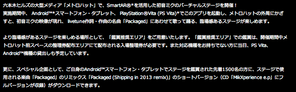 ※使用された技術は、SONYのSmartAR。Android(機種限定)とPS Vitaで楽しむことができる。