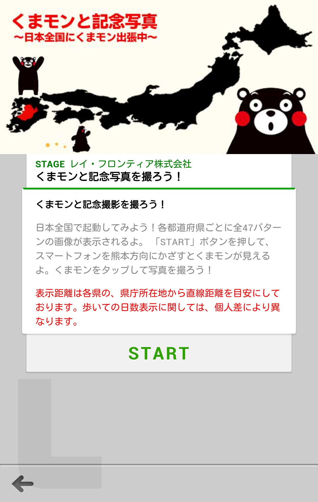 熊本県の方角にくまモンが出てくる驚きと、実際にその場所に行ってみることでしか手に入らない、くまモンのフ レームを集める面白さがあります。 熊本県ではどんなくまモンに出会えるのか。それぞれの県で表示が変わります。お時間がある時に是非お試し ください。