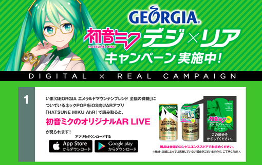 何かとARで採用されやすい初音ミク。今回は缶コーヒーなどを発売するジョージアと初音ミクがコラボ。「デジ×リアキャンペーン」が9月15日から始まった。