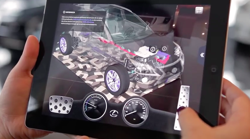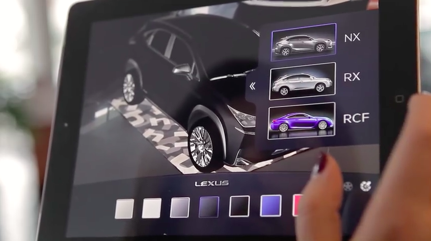 レクサスが店頭で、導入している拡張現実機能をもったiPad向けアプリ。店頭で在庫していない車種をARマーカ―で実物大表示させ、色替えや内部構造の可視化などを行っている。その車種の詳しい情報を見ることができる。