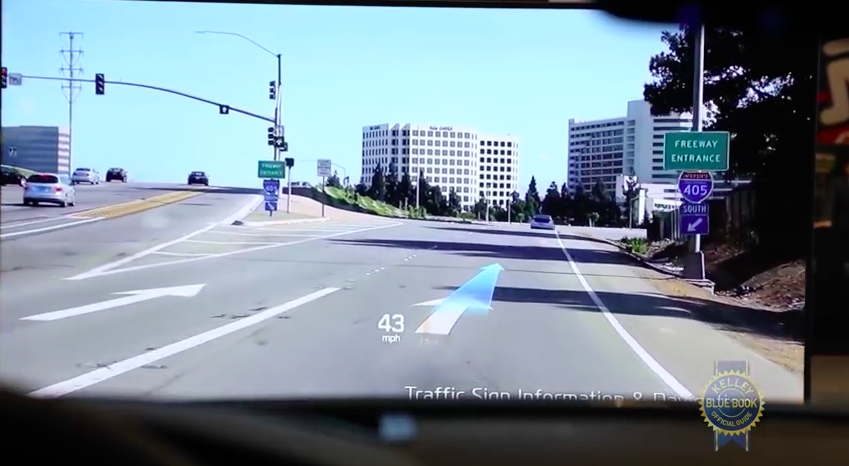運転中にフロントガラスに目的地へのナビゲーションをオーバーレイ表示してくれるというもの。運転中に必要となるさまざまな情報を通知するため、事故を防ぐ役目もしてくれそうに見える。