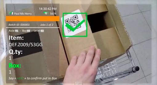 Augmented Reality supports the execution of Picking and Packing process managed by Click Reply WMS. This application displays the information at the exact location and time using smart glasses devices. These devices are glasses equipped with screens, cameras, and microphones. With this concept, the user’s real world view is intercepted and an augmented view re-displayed in the user’s field of vision. http://www.reply.eu/en/topics/supply-...