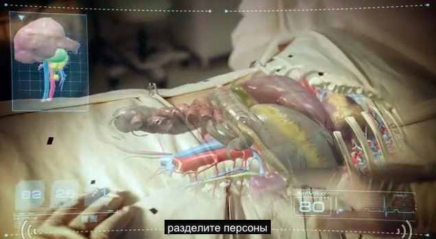 手術を支援することができる新しい技術としてARやVR、手で触れずにパソコンを操作することができる音声やセンサー技術が注目されている。ここでは、手術を行う患者の身体を予めスキャン後3D化し、シースルータイプのヘッドマウントディスプレイで手術中にそのデータを確認することが出来るというもの。100%の正確性が必要とされる医療現場でもAR技術は期待されている。