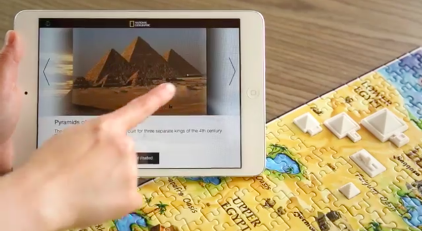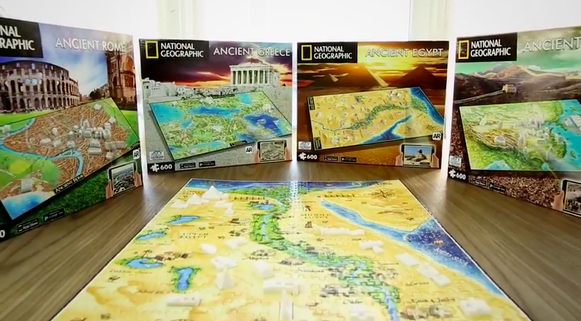 4D Cityscape has now teamed up with National Geographic to launch the world's first multi layer Jigsaw Puzzle that teaches history with its interactive puzzle App! Learning about Ancient Cities has never been so much fun. The first layer is the historical jigsaw map that consists of approximately 600 pieces. The second layer consists of model replica monuments and buildings, to showcase the landscape of the city in the Ancient era. Once assembly is complete, the history lesson really begins with the 4D National Geographic App. This interactive App allows you to interact with the puzzle digitally while learning key facts and view fun images of each structure. Test yourself with the fun Trivia feature, which will encourage further interaction and educational support. The free App is available to download on both the Apple App Store and Google Play Store. Assembled dimensions of 15" L x 22" W x .5" H. Age 7+. Developed by http://augmentedpixels.com