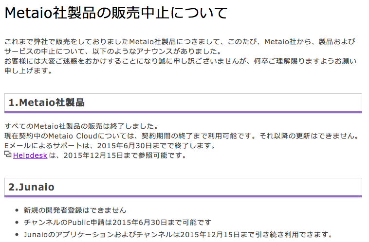 “Metaio products and subscriptions are no longer available for purchase,” the company says on its product support page. “Downloads of your previous purchases will be available until December 15th, 2015, and active cloud subscriptions will be continued until expiration. Email support will continue until June 30th, 2015.”