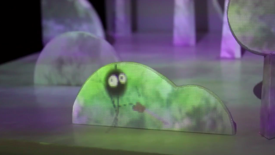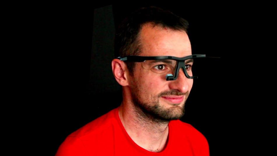 Blue Behold combine interactive video mapping and eye tracking. The spectator walk into a space where his eyes became a way to interact.Created in partnership with the company Suricog, Blue Behold is using a new generation of eye tracking glasses (design by Suricog, winners of the Price Startup Winners Laval Virtual 2014) which are very light and wireless. The glasses are not available for private use, they are a new prototype used only with Blue Behold for now. Suricog's glasses allows to detect in real time the exact 3D position (2mm precision) of the spot where the user is looking at. Using this fantastic technology Blue Behold offers a world between reality and virtuality, where your eyes are the only way to interact and explore the fiction.