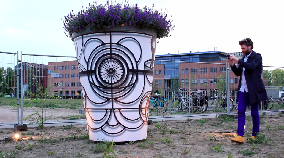 Hermaton exhibited at Bosch Shine Arts festival in s’Hertogenbosh showcases the game in a completely new way. In this iteration of the installation, seven giant flowerpots are covered with artwork that trigger different levels of the Hermaton game. Each flowerpot digitally augments into a virtual maze that players get to navigate around and explore new landscapes. Each level can be experienced by finding and switching on the various light-bulbs within this surrealistic maze.