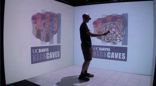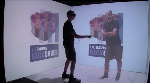 A simulation of low-field-of-view augmented reality (AR), using the estimated FoV of Microsoft's HoloLens (30 x 17.5 degrees). Filmed in a CAVE VR environment, using custom code to put "virtual blinders" on the user. The blinders create a truncated pyramid locked to the viewer's head, 30 x 17.5 degrees wide with the pyramid's top rectangle being 24" from the viewer's eyes.