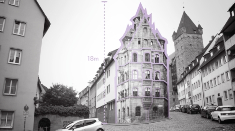 Das Konzept besteht aus zwei Teilen, der Smartphone App und dem Google Cardboard. Mit der Smartphone App kann der User in fünf verschiedenen Interessenrouten die Stadtgeschichte Nürnbergs besser kennen lernen. Die Routen unterscheiden sich in ihrem Thema, den Stationen und der Zeitspanne, die sie abdecken. Die App navigiert den User zu einer der 122 Stationen innerhalb der Stadtmauern und zeigt dann kleine animierte Filmchen zur Geschichte der jeweiligen Station, die zusammen mit dem Google Cardboard und dessen 3D Effekt eine immersive Erfahrung liefern. Hierfür wird das Smartphone in das Google Cardboard gesteckt und durch den seitlichen Magnetknopf der Film aktiviert. Durch die örtliche Verknüpfung der Plätze und die grafische Aufarbeitung des geschichtlichen Materials lernt der User viel mehr über seine Stadt als bei herkömmlichen Stadtführungen. Im Album werden alle bereits abgehakten Stationen gesammelt, sodass diese auch über Social Media Kanäle geteilt werden können. Für Unterhaltung zwischendurch sorgt der „inspiriere mich“ Modus, der die nächstliegenden Stationen anzeigt. So kann der User auch z.B. beim Warten auf den Bus etwas über seine Umgebung erfahren.