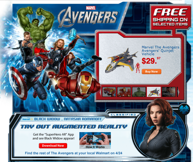 http://see.walmart.com/TheAvengers/Download the Super Hero Augmented Reality App, then go to Walmart where you can assemble your Avengers team. Use the app to unlock characters by pointing the app at Avengers signage throughout the store. You can also take pictures to share with your fiends. The app is now available in both the iTunes App Store and Android Market.