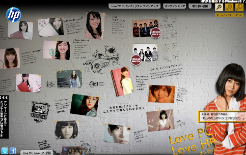 Hewlett-Packardが2011年に買収したソフトウェアベンダー、英Autonomyの「Aurasma」(オーラズマ)を用いたキャンペーン。雑誌広告と移動式ショールーム「Love PC, Love HP.トレーラー」の外装を、iOS/Android端末のアプリ「Aurasma Lite」を通して認識し、画像の上をオーバーレイする形でストリーム動画が流れる。