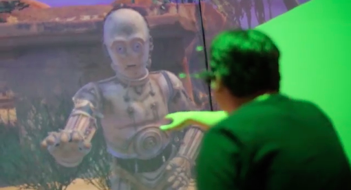 Blue Behold combine interactive video mapping and eye tracking. The spectator walk into a space where his eyes became a way to interact.Created in partnership with the company Suricog, Blue Behold is using a new generation of eye tracking glasses (design by Suricog, winners of the Price Startup Winners Laval Virtual 2014) which are very light and wireless. The glasses are not available for private use, they are a new prototype used only with Blue Behold for now. Suricog's glasses allows to detect in real time the exact 3D position (2mm precision) of the spot where the user is looking at. Using this fantastic technology Blue Behold offers a world between reality and virtuality, where your eyes are the only way to interact and explore the fiction.