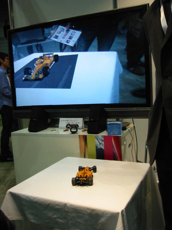 F1の模型をマーカーとして認識し、画面には同じ形の3Dモデルが走って様子が表示されていた。モデル本体に空気の流れを重ね合わせて表示する技術をデモに盛り込んでいた。KGT社が得意とする異なるソフトの情報を容易に融合する技術だ。