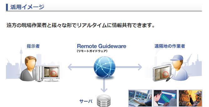 [Remote Guideware] Remote Guidewareは様々なコミュニケーションの課題をインターネット技術にて克服する一つの手段です。 今回はこのプラットフォームの一部を[ 作業遠隔支援システム ]とし、コミュニケーションのインフラストラクチャシステムとして構築しました。 今後順次リリースを行う拡充機能にて、空間と情報の紐付け付けや、利用後の分析を行うツールによる施設・設備の効率的な運用をもたらすものとなります。
