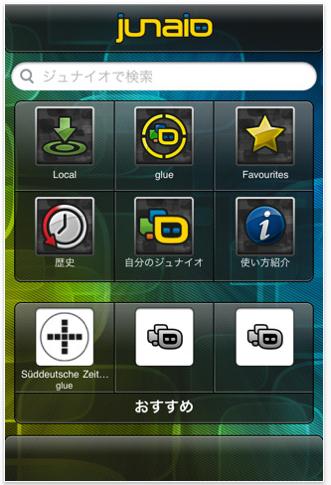 junaioのインターフェースは、Layarと比較されることが多く、今ひとつ評判が良くなかった。今回のバージョンアップにより、デザインはもとより分かりやすいナビゲーションになったようだ。下記、同社が公開しているキャプチャ―を転用したので、ご覧いただきたい。
