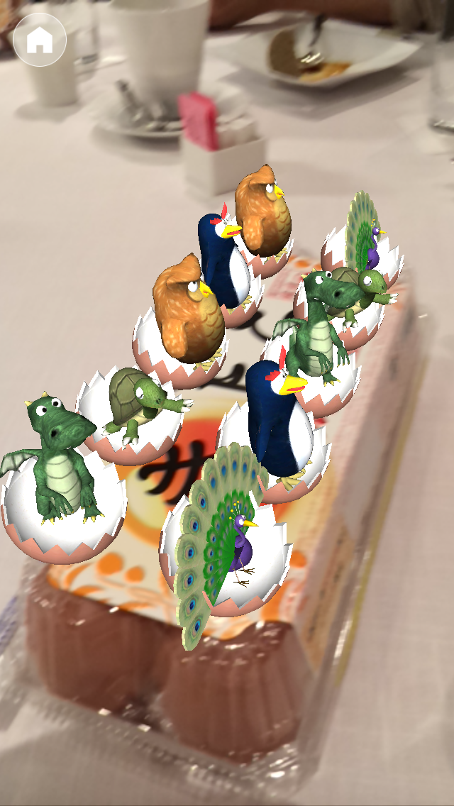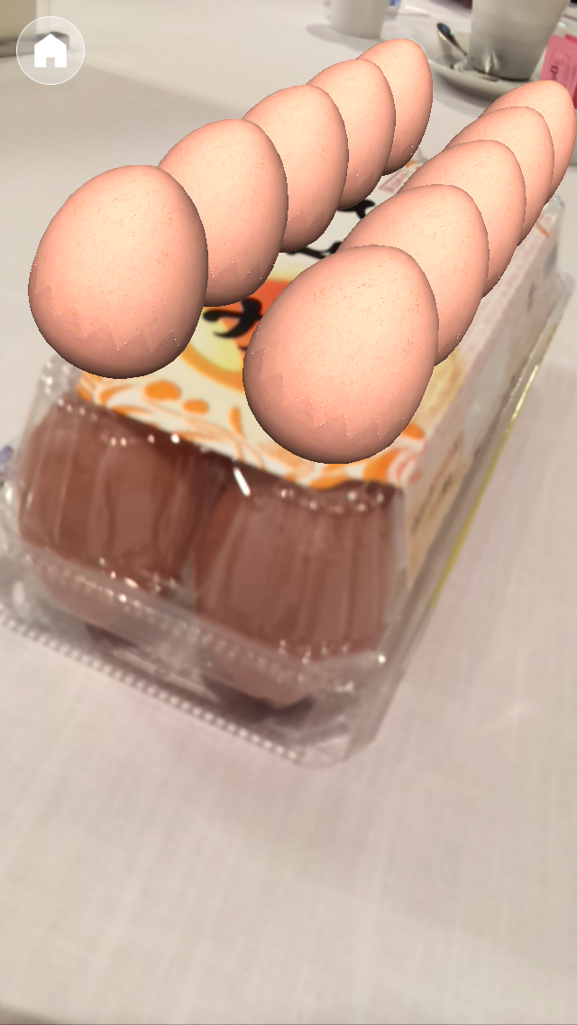 ARは、きよらのパッケージにカメラをかざすと、たまごが10個パッケージの下から出現。たまごタップして、同じ動物が見つけて5つを揃えるゲームが楽しめる。全部揃うと、今度はニワトリとヒヨコが出現。タップするとアニメーションが楽しめる。回したり、写真を撮影してシェアすることもできる楽しい機能になっている。これならば、パッケージは「おもちゃ箱」に入っていくことは、間違いなさそう。