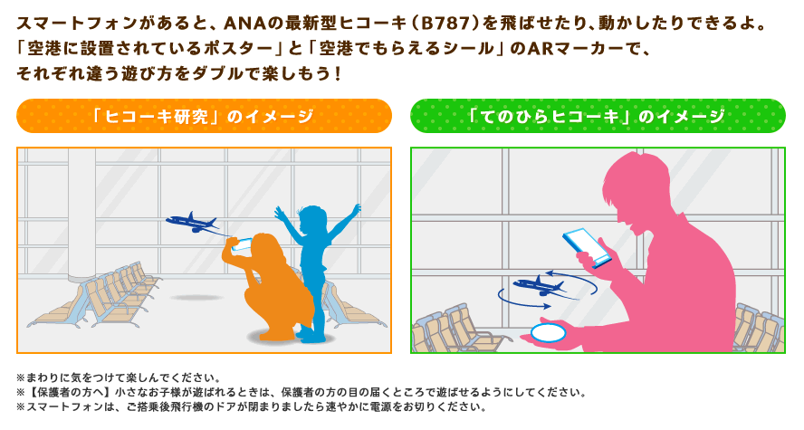日本の3空港「羽田、千歳、那覇」でARアプリを使用したイベントが開催中。まず、無料アプリ「ヒコーキかんさつ」をインストール。そして、空港内の何箇所かに置かれたパネルのマーカーを認識させるとB787が出現。自分で操作して楽しめるというもの。さらにポケモンシールをゲットして、その裏面の滑走路をにカメラをかざずと、3種類のARミニチュア飛行機が飛ぶ様子を見ることができる。2014年7月1日〜8月31日まで開催されているから早めに手に入れよう!