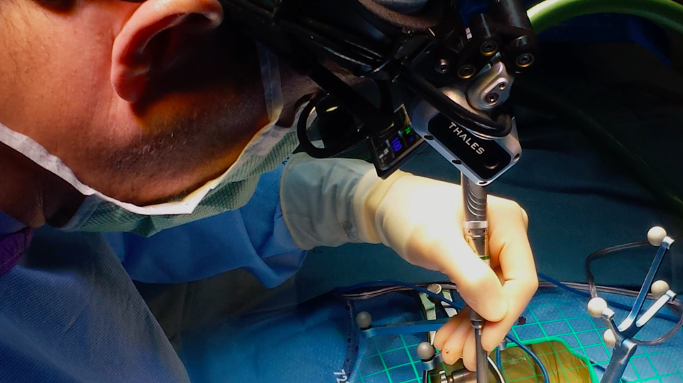 A head-worn surgical display which leverages Thales' augmented reality technology used by military aviators. This product's innovative technology transfer aims to modernize the operating room by improving the man-machine interface, simplifying procedures and enhancing operational awareness.