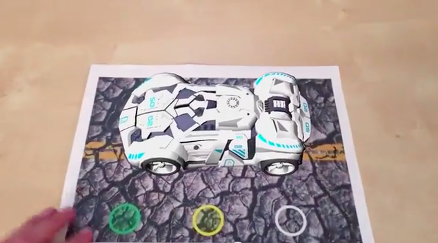 付属のマーカーを読み取ると、丸い盤上にARの世界が表示される