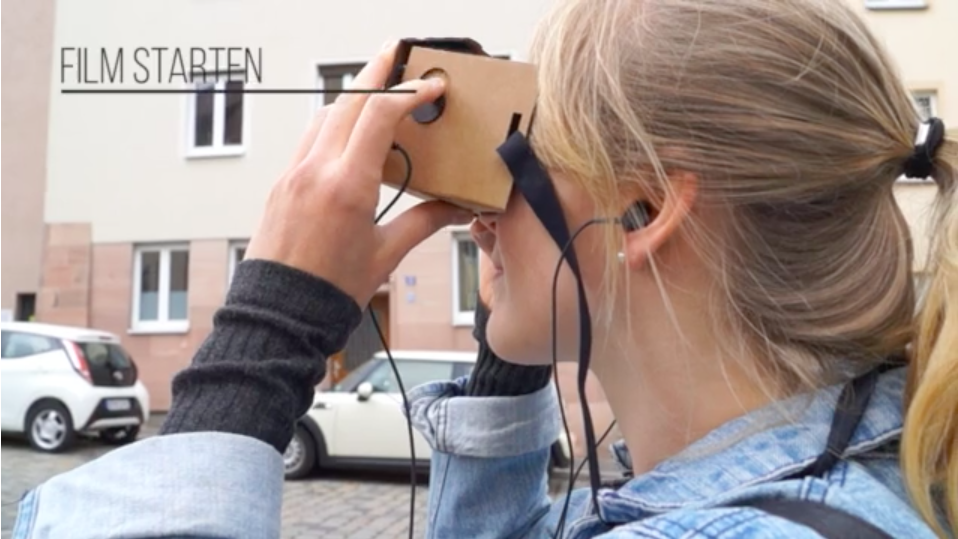 Das Konzept besteht aus zwei Teilen, der Smartphone App und dem Google Cardboard. Mit der Smartphone App kann der User in fünf verschiedenen Interessenrouten die Stadtgeschichte Nürnbergs besser kennen lernen. Die Routen unterscheiden sich in ihrem Thema, den Stationen und der Zeitspanne, die sie abdecken. Die App navigiert den User zu einer der 122 Stationen innerhalb der Stadtmauern und zeigt dann kleine animierte Filmchen zur Geschichte der jeweiligen Station, die zusammen mit dem Google Cardboard und dessen 3D Effekt eine immersive Erfahrung liefern. Hierfür wird das Smartphone in das Google Cardboard gesteckt und durch den seitlichen Magnetknopf der Film aktiviert. Durch die örtliche Verknüpfung der Plätze und die grafische Aufarbeitung des geschichtlichen Materials lernt der User viel mehr über seine Stadt als bei herkömmlichen Stadtführungen. Im Album werden alle bereits abgehakten Stationen gesammelt, sodass diese auch über Social Media Kanäle geteilt werden können. Für Unterhaltung zwischendurch sorgt der „inspiriere mich“ Modus, der die nächstliegenden Stationen anzeigt. So kann der User auch z.B. beim Warten auf den Bus etwas über seine Umgebung erfahren.