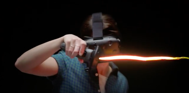 Tilt Brushは、仮想現実の装置 HTC Vive (バイヴ)で実現することができる。HTC Viveは、PCに接続して動作する装置で、5mx5mのエリアを動き回ることができるハイスペックなHMDである。製品版もすでに販売されている。